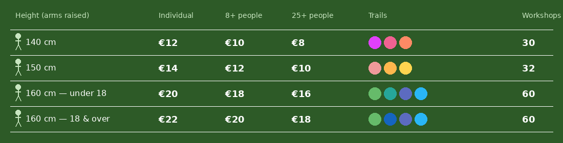 Every Wednesday, Saturday, Sunday and public holidays as well as during school holidays.
