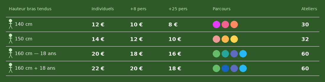 Tous les Mercredi, Samedi, Dimanche et jours fériés ainsi que durant les vacances scolaires.